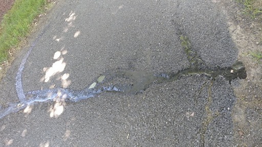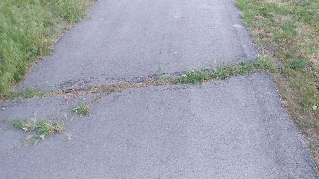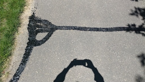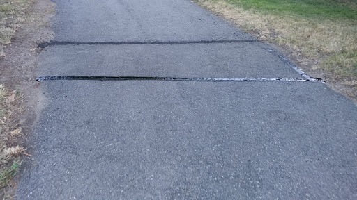 On the first day of the project ~20 adults and youth cut back the grass, weeded (including spraying goat heads), and cleaned out and filled in the larger cracks in the trail with asphalt provided by the city. Later, Big Red Asphalt and more volunteers sealed the smaller cracks with a rubberized sealant. In all, 76 cracks were repaired by fellow scouters, friends and neighbors who provided a total of 134 hours of service.
